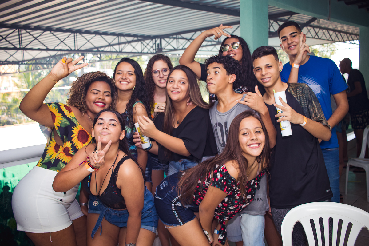 Aniversário de 15 anos da Brenda. Piscina, churrasco, roda de samba, família e muitos amigos em um domingo inesquecível.