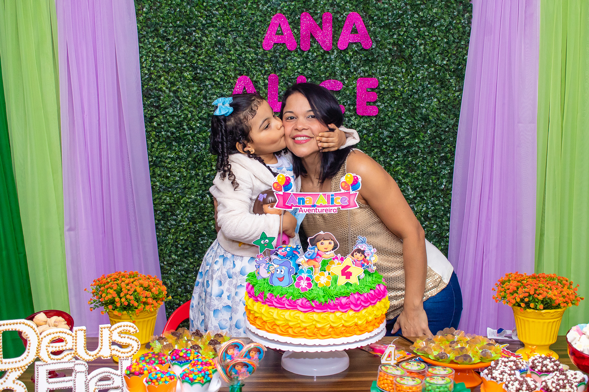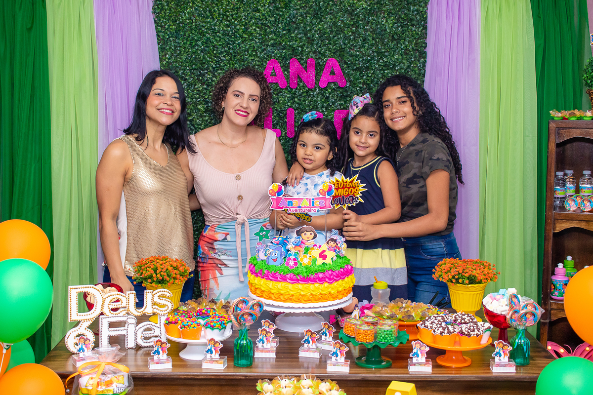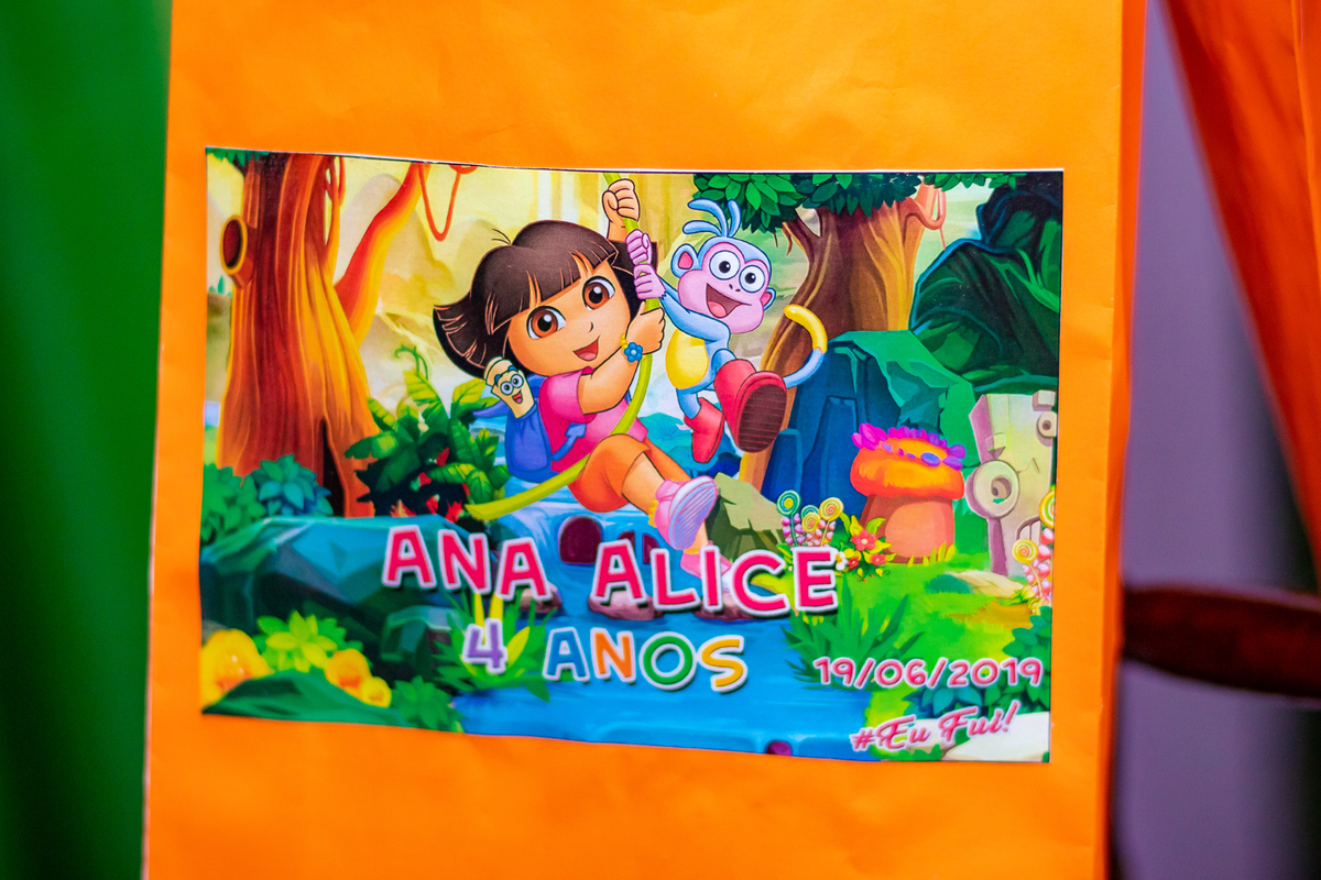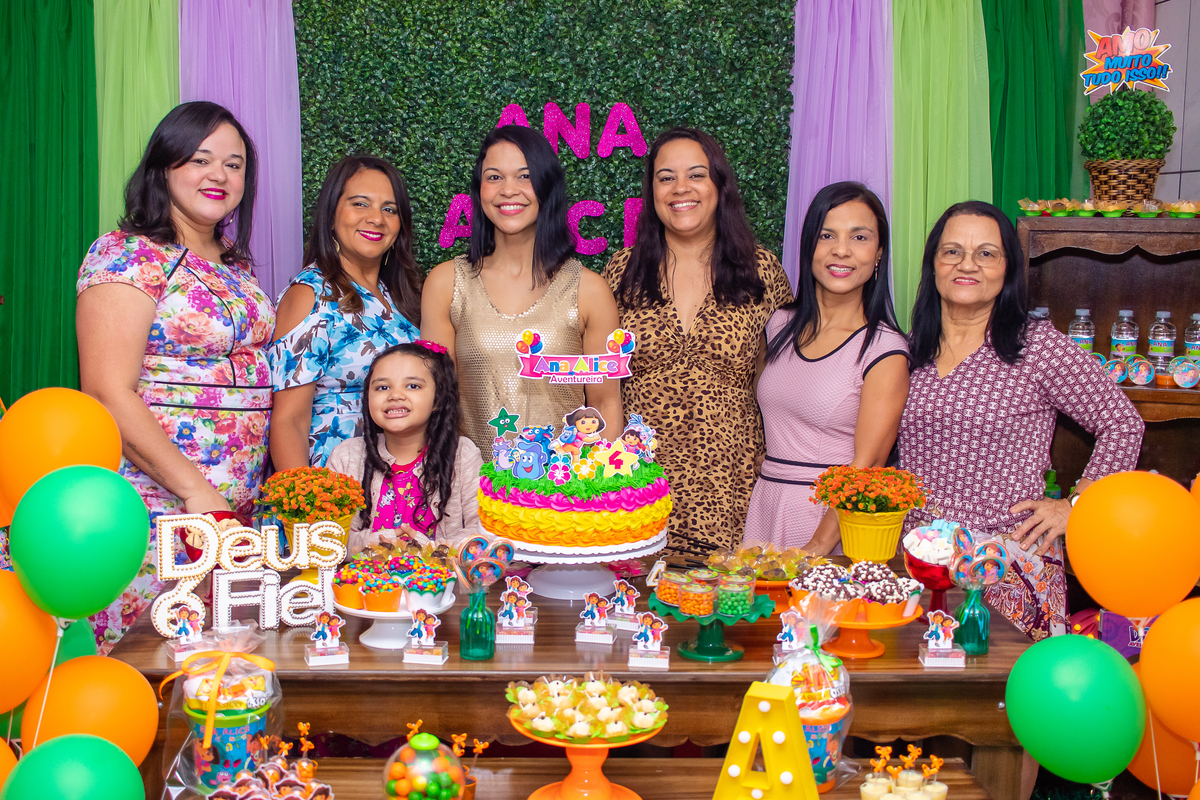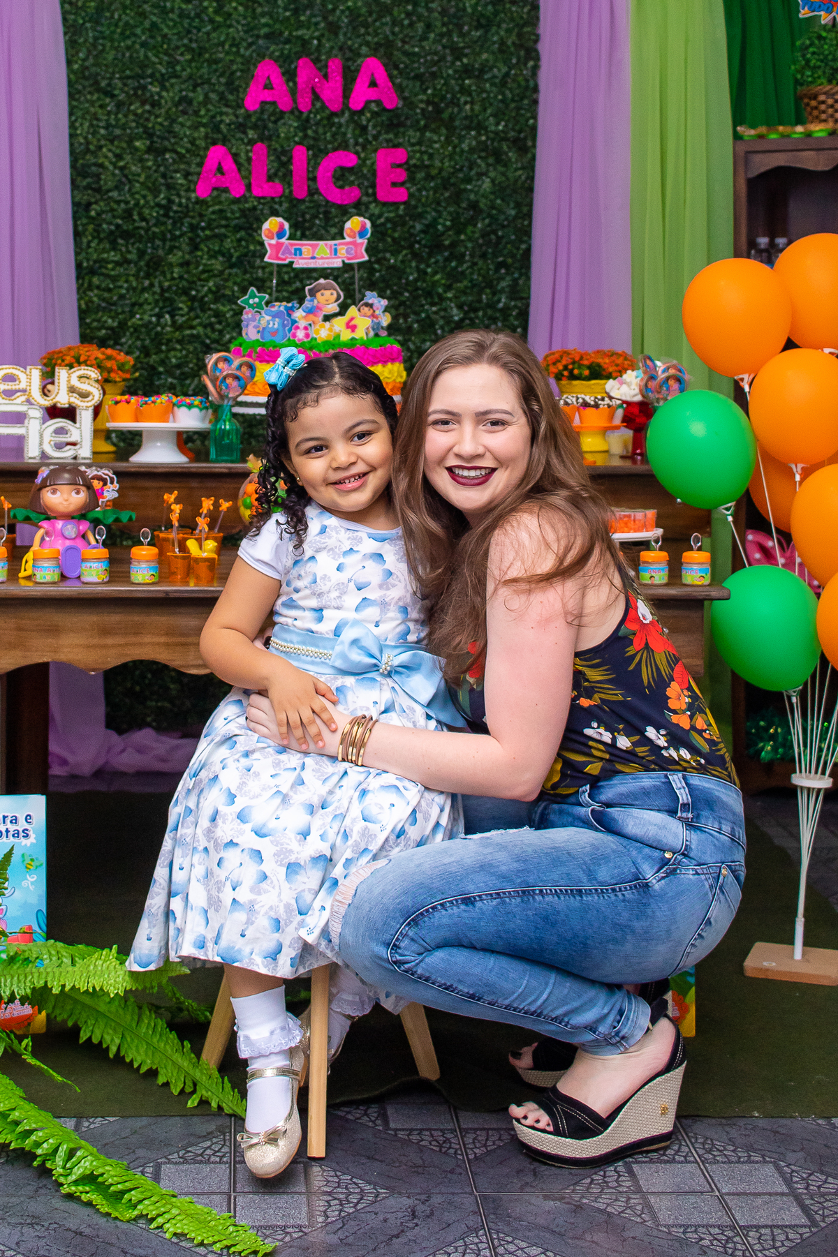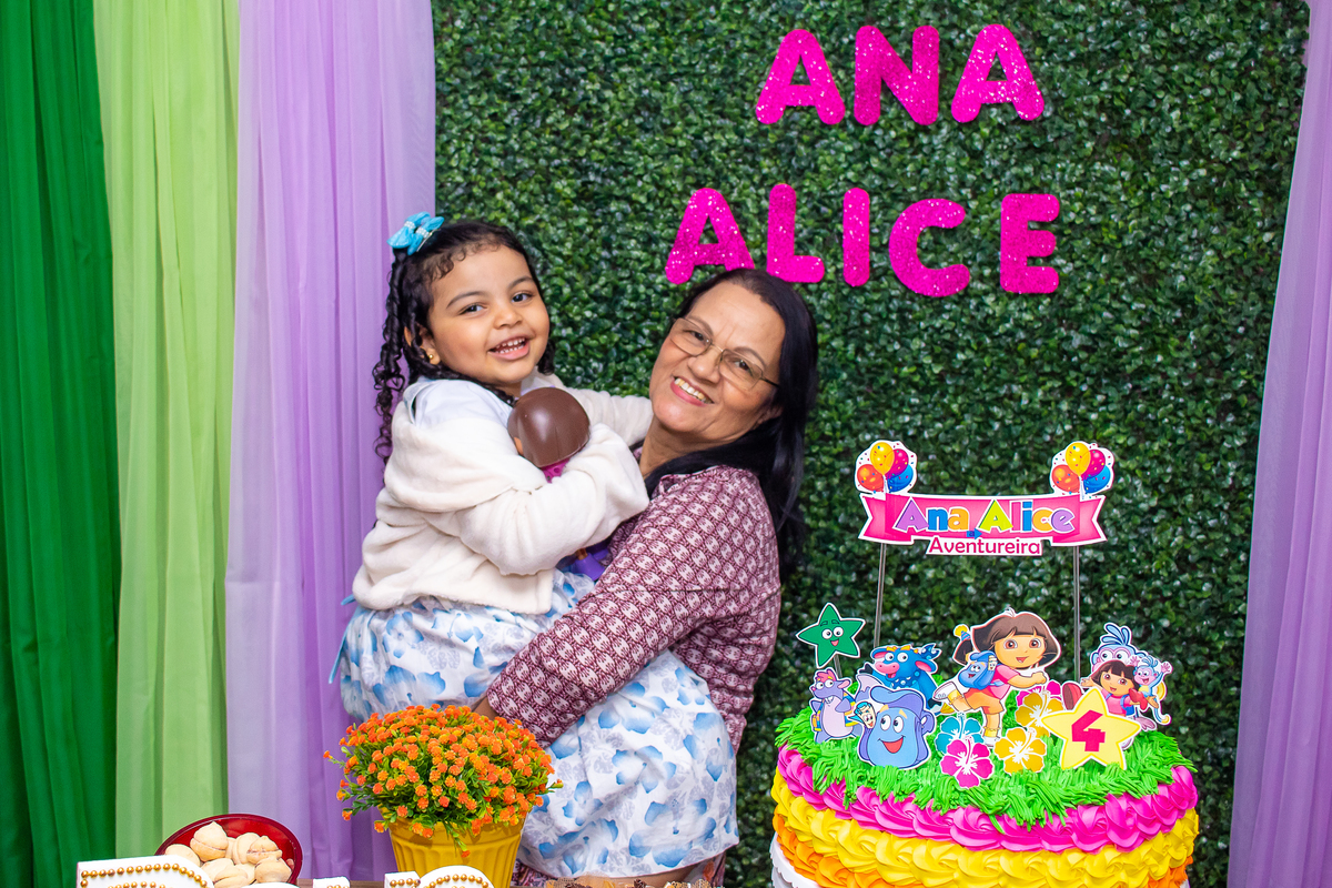 Comemoramos o 4º aniversário da Ana Alice, com uma festa muito animada junto com toda a família, desta vez com o tema da Dora, a Aventureira.