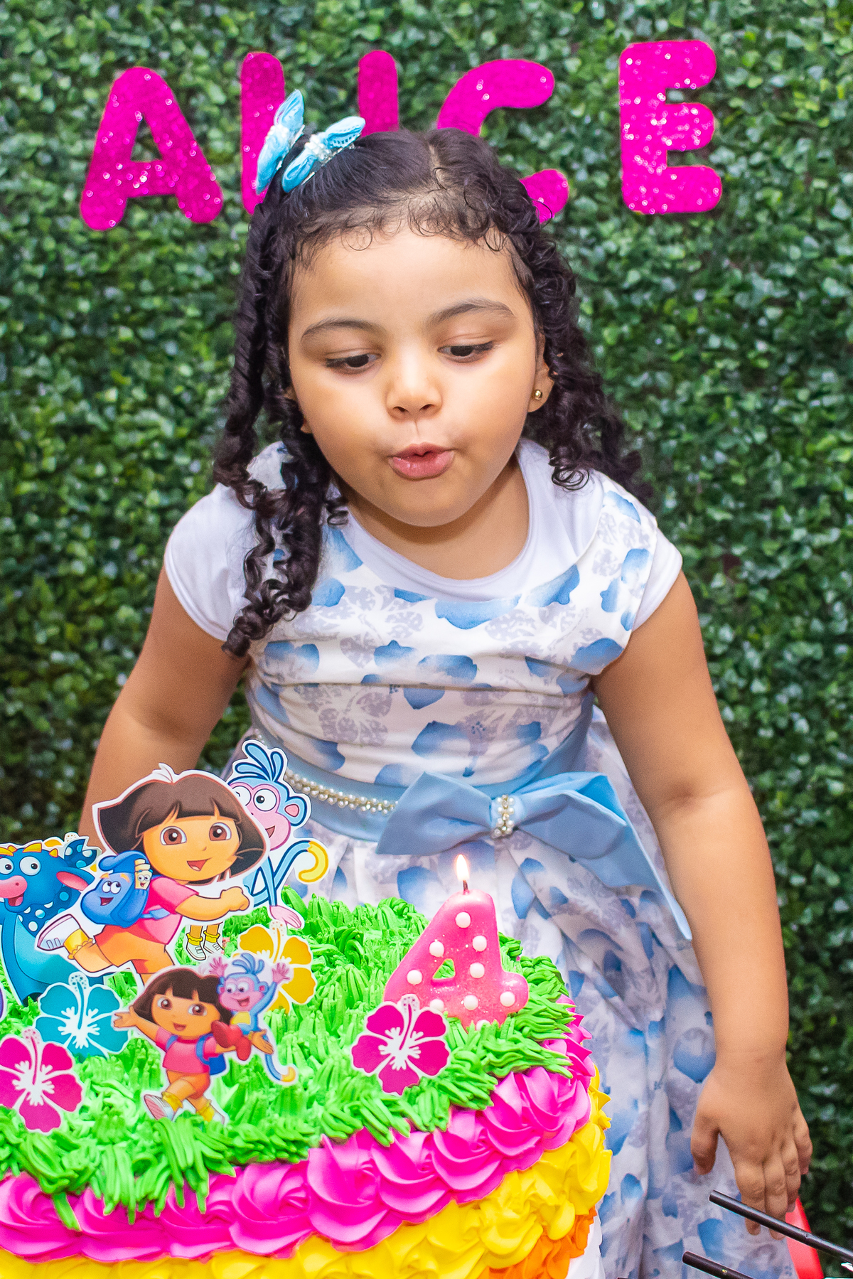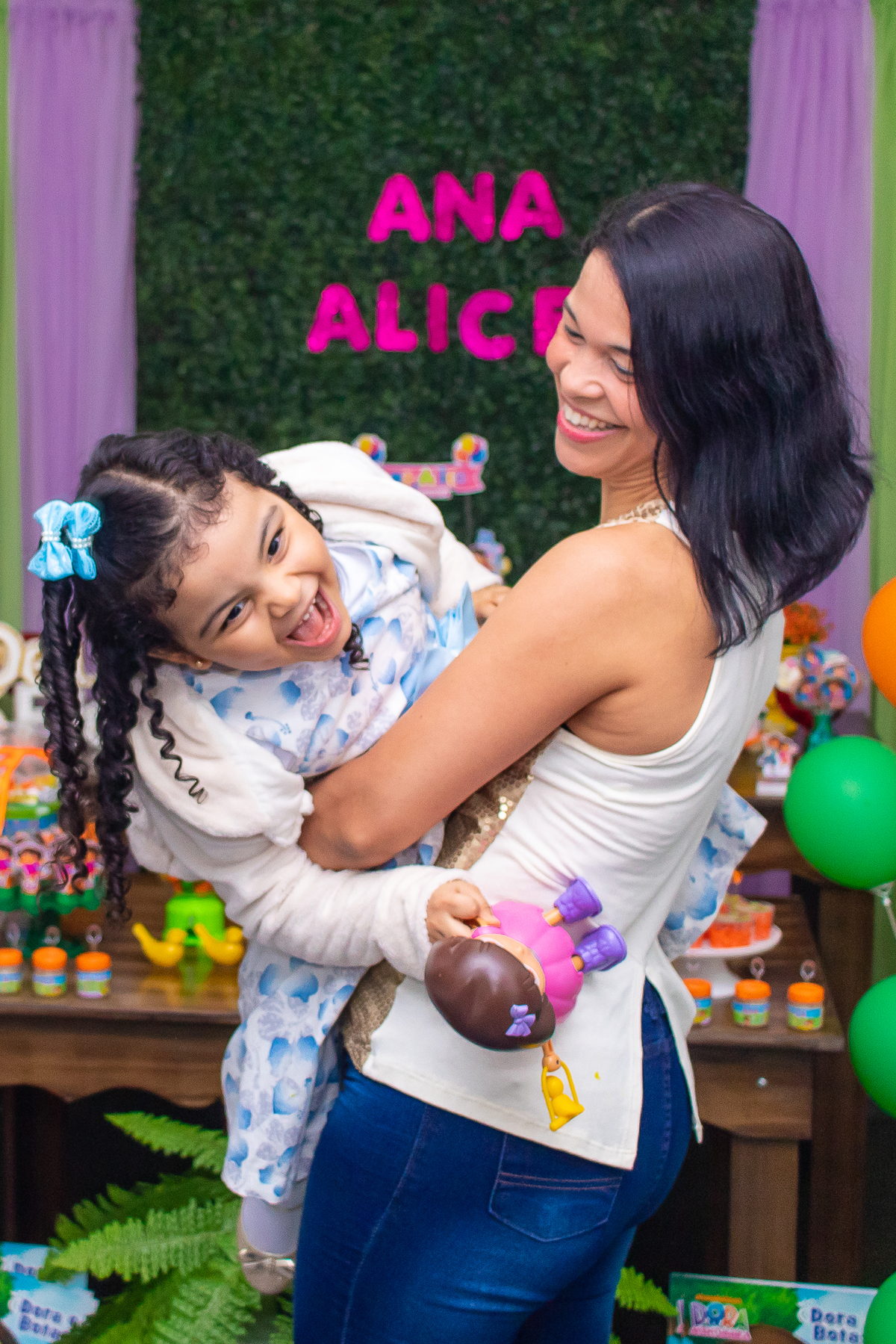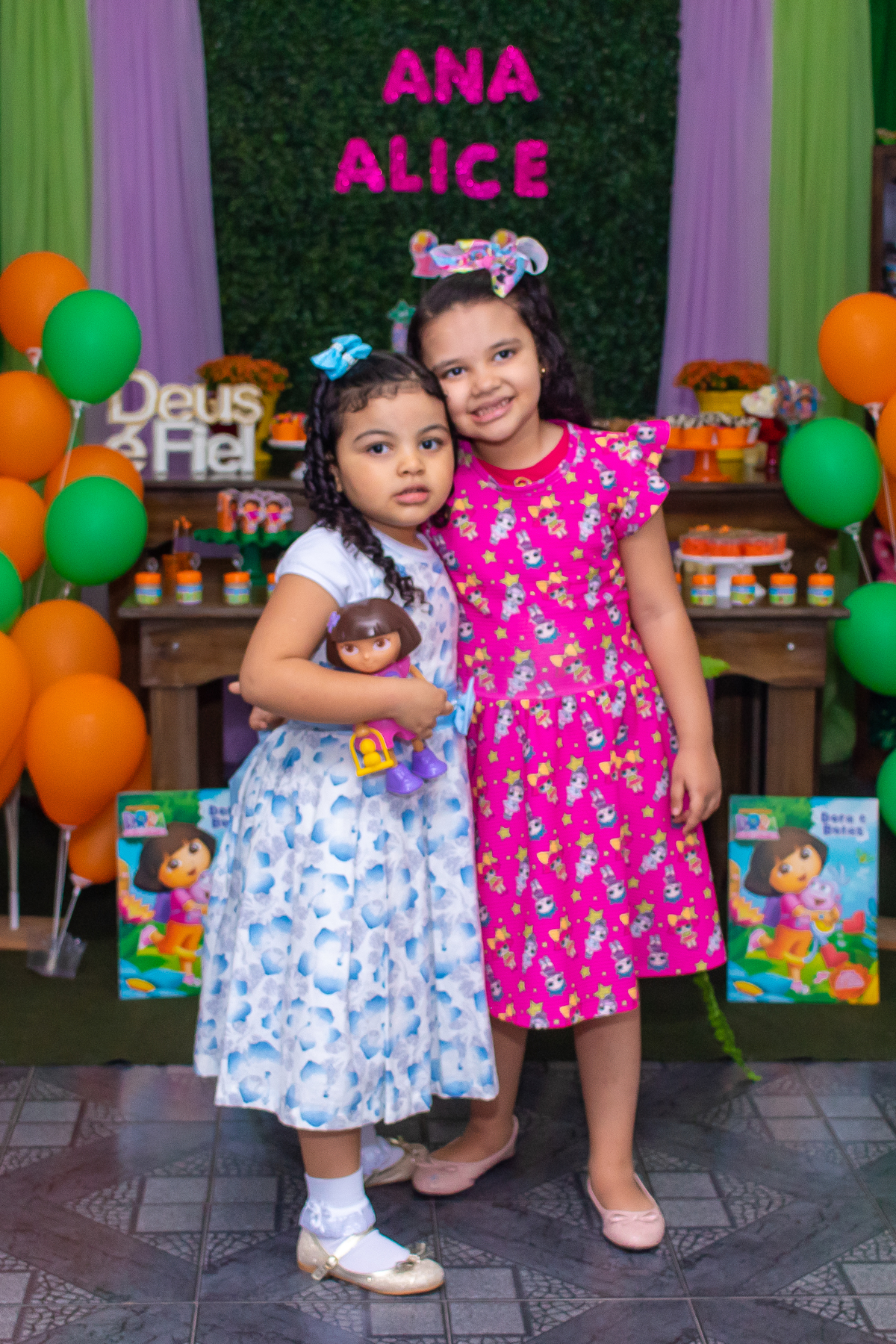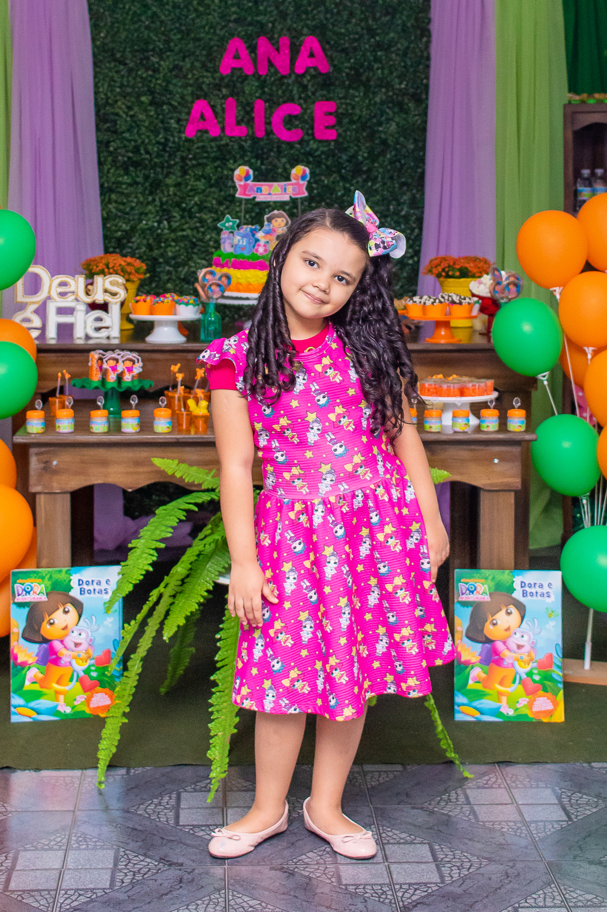 Comemoramos o 4º aniversário da Ana Alice, com uma festa muito animada junto com toda a família, desta vez com o tema da Dora, a Aventureira.