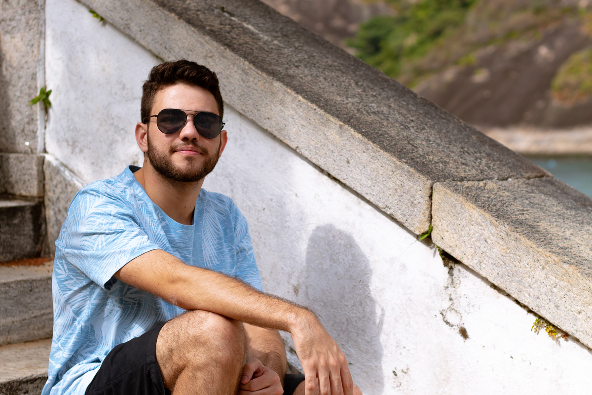 Ensaio externo com o modelo/ator Gabriel Castro, realizado na Praia Vermelha. Um dia de sol agradável, que rendeu fotos espetaculares.