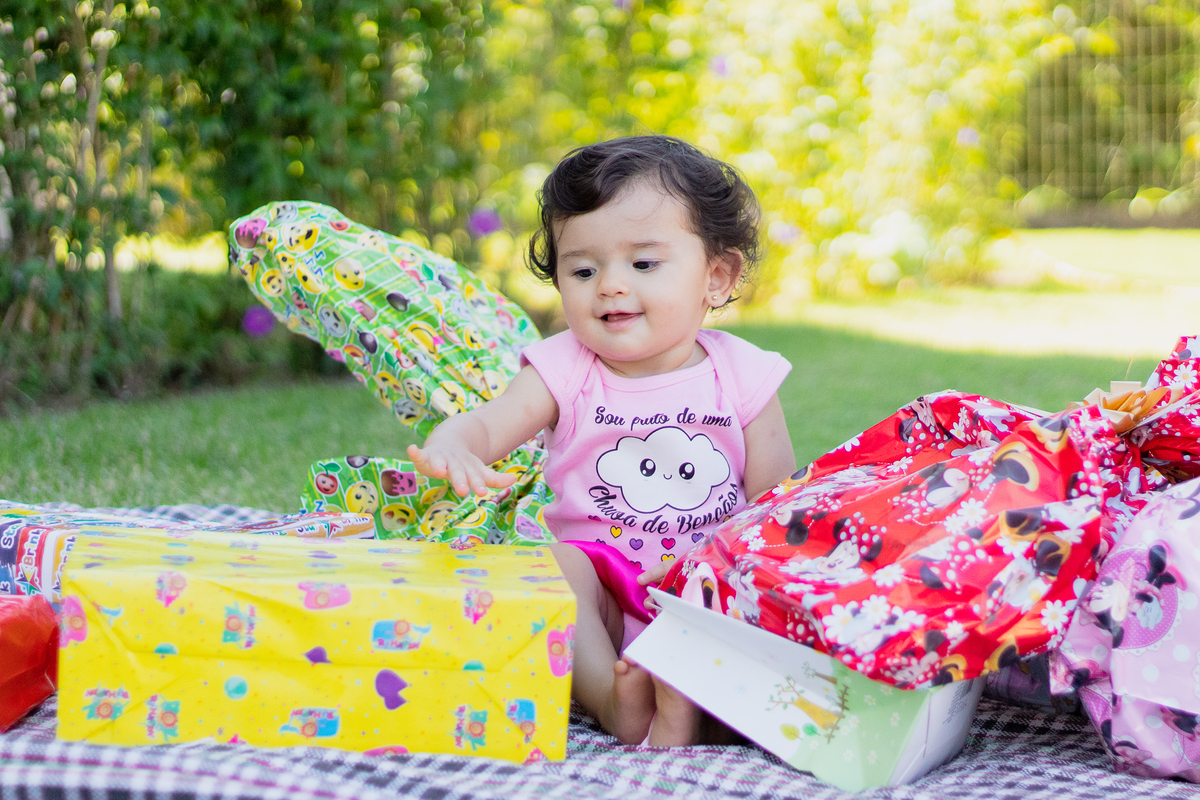 Na manhã seguinte à festa de aniversário do primeiro aninho da Lorenna, fizemos esse mini ensaio que chamamos de “Smash the Presents”, e o resultado foram essas fotos cheias de fofura!